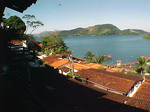 Nível superior duas suítes com entradas independentes e varanda comum com vista panorâmica da enseada.