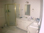 Casa em estilo americano, jardins, salão em diversos ambientes ( jantar, estar, lareira e escritório. Lavabo e cozinha planejada